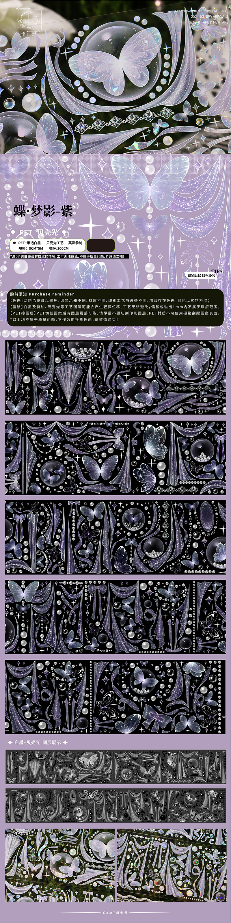 コピー| 製品名 | 【新七天】マスキングテープ幽·梦影-紫-PET贝壳光 |